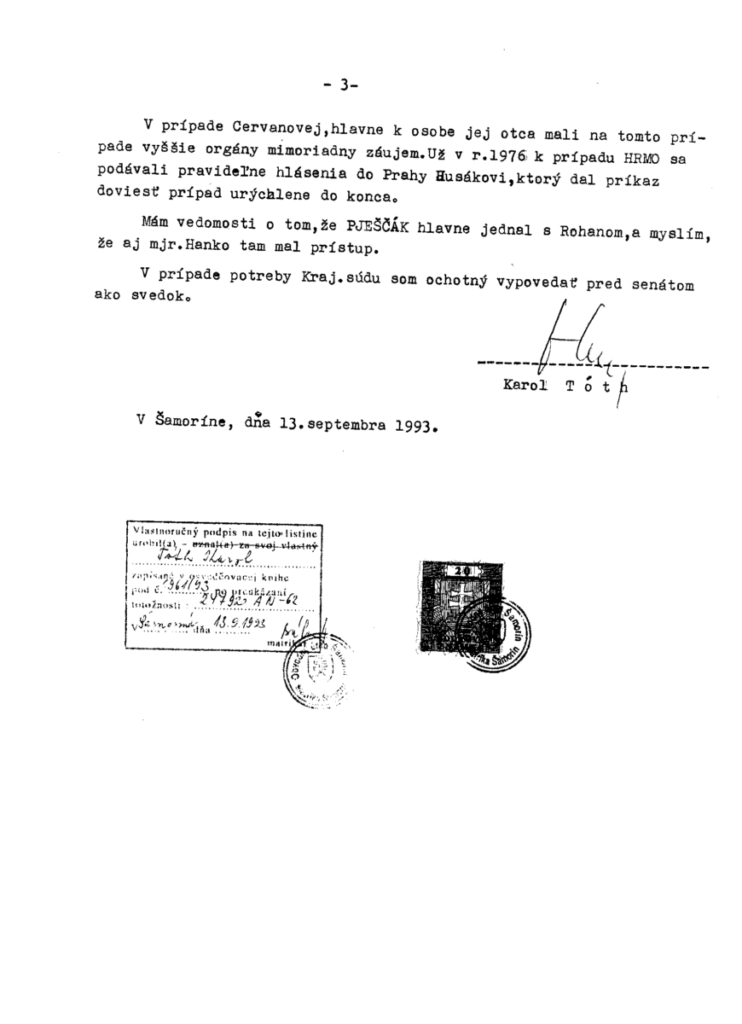 Súdna zápisnica 06. – 17.09.1993 Dr. Vlček